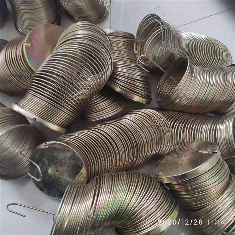 四、彈簧骨架的質量直接影響濾袋的工作狀態與使用壽命,彈簧除塵骨架后處理是經過表面鍍鋅或噴塑,也可根據客戶的不同工況要求,表面鍍其它涂層。